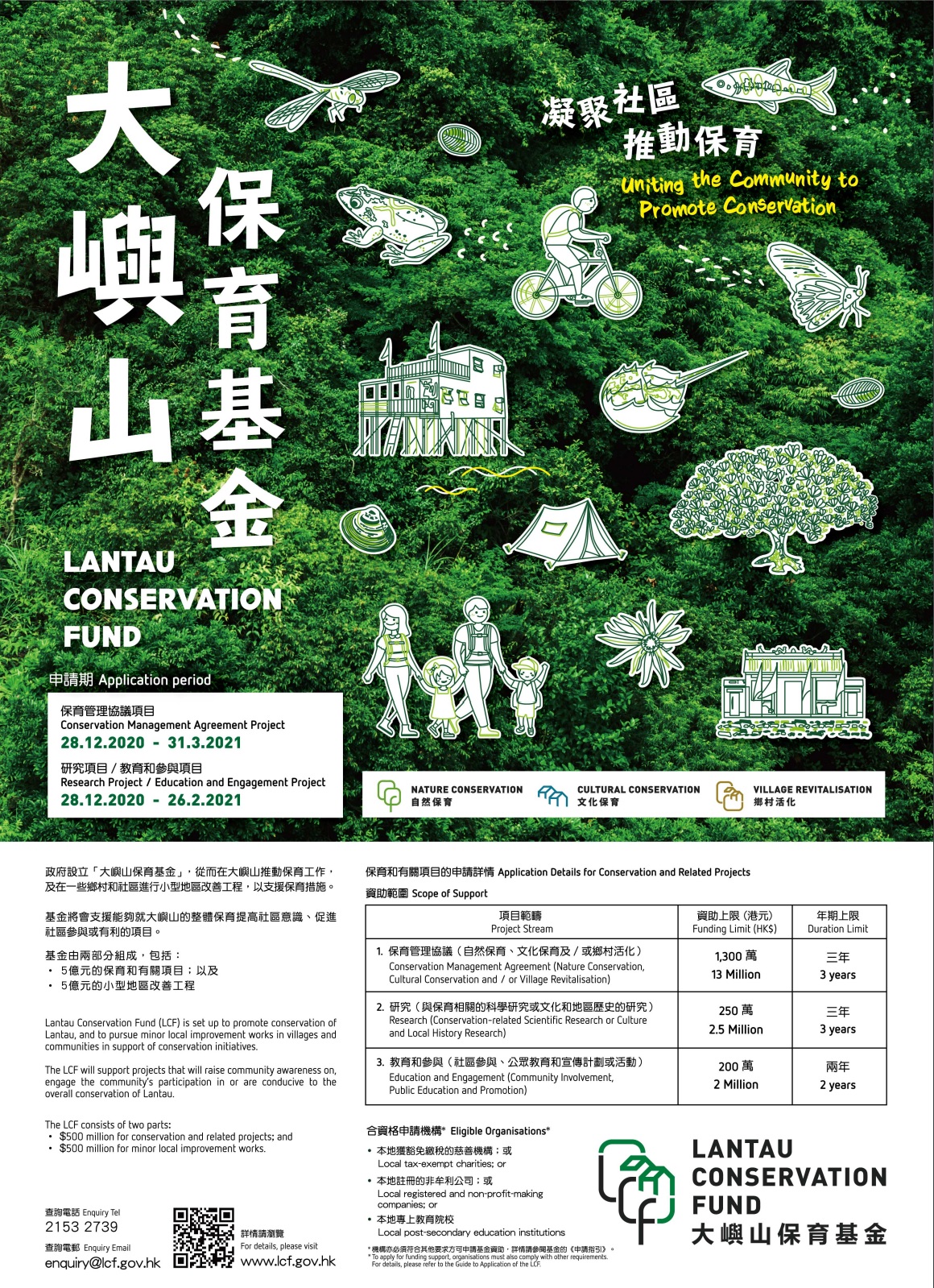 For enquiries, please contact the Secretariat of the LCF Advisory Committee at 2153 2739 or by mail enquiry@lcf.gov.hk.